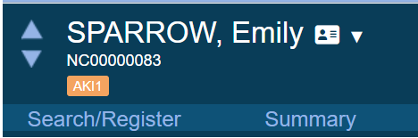 Nervecentre adds an amber patient tag ‘AKI 1’ to the patient banner.
