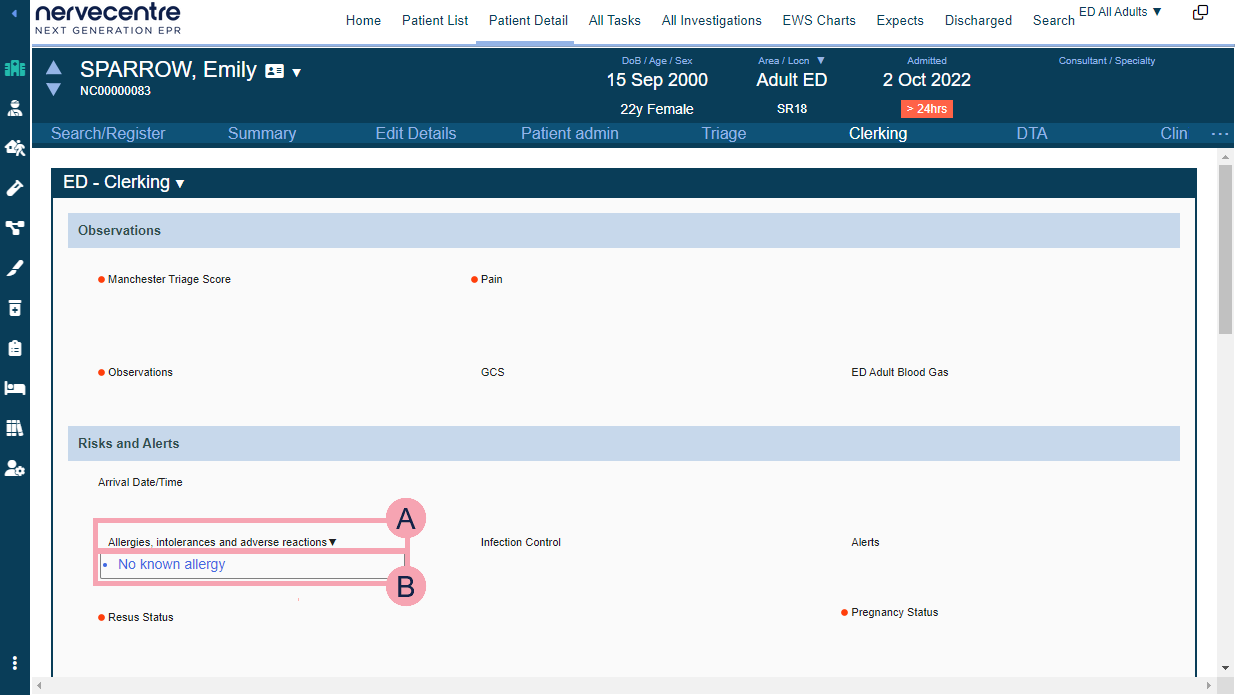Clinical noting is an integral element of Nervecentre. Clinical notes contain information that is related to a patient’s clinical journey, for example, a diagnosis or a photo of a wound. Clinical notes can contain text, dates, times, images, documents, SNOMED terms, data, and audio.