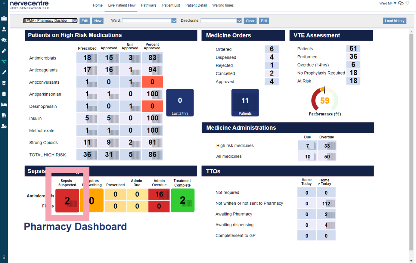 You can view flow metrics in live flows from Live Flow > Live Patient Flow.