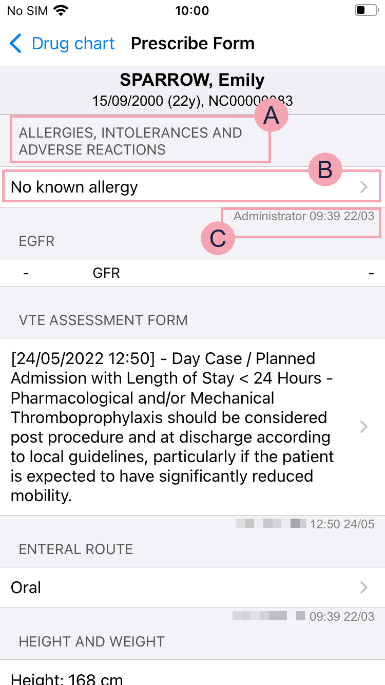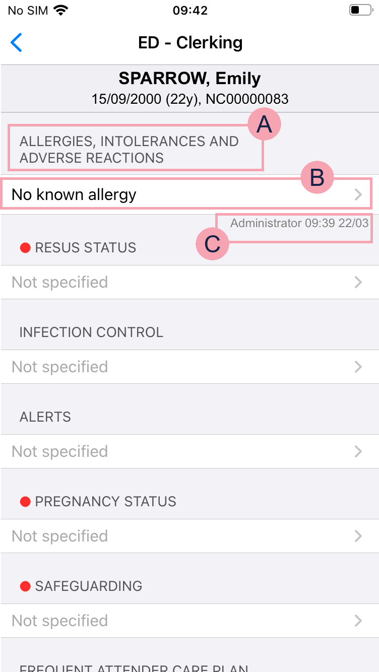 Shows all the appointments in the clinics on the selected date. Double-click a patient's name to view their patient record. Read more about viewing a patient record You can update some clinical notes from the clinic list. Double-click in any column containing a clinical note to update the clinical note. For example, double-click in the column Algy to update the clinical note 'Allergies'. |