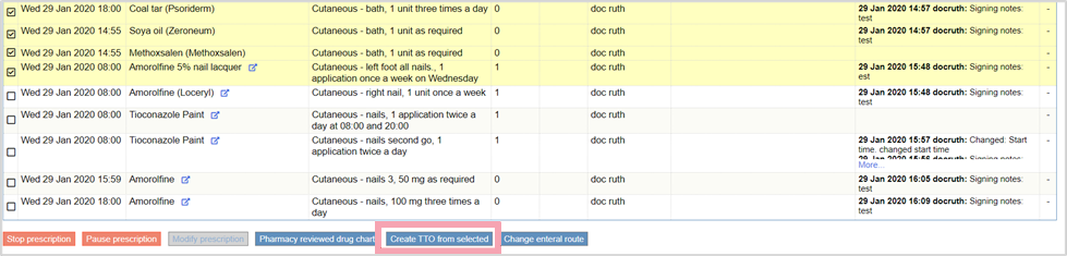 If further medication is prescribed after the creation of the TTO, select the medication and then select Add selected to TTO.