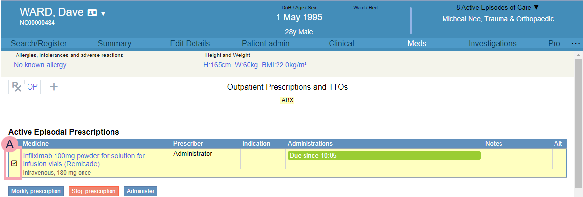 You can modify, administer, and stop episodal prescriptions. You prescribe an episodal medication once. Then you can administer the medication multiple times over a set duration.