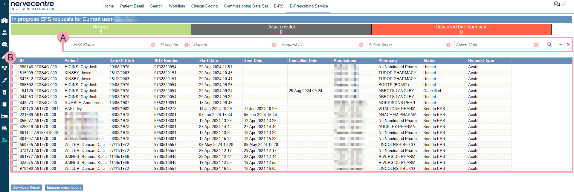 You can view and manage prescriptions sent by EPS from Back office > E-Prescribing Service, or from Patient Detail > Patient admin > View EPS.
