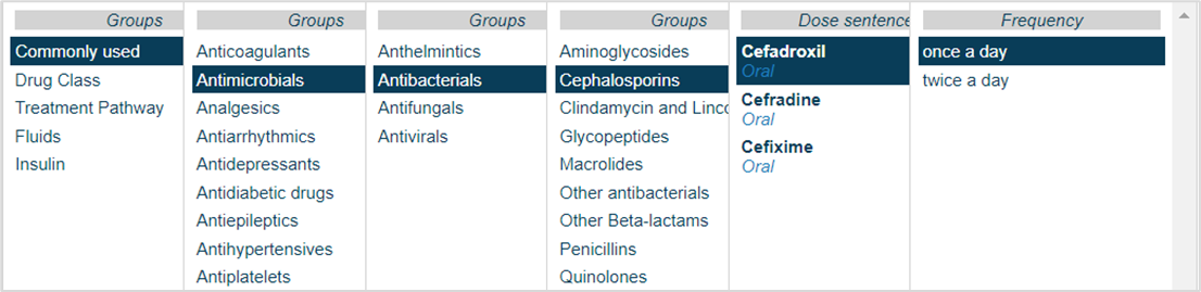 You can prescribe medications and fluids with a dose sentence. Dose sentences available depend on your organisation.