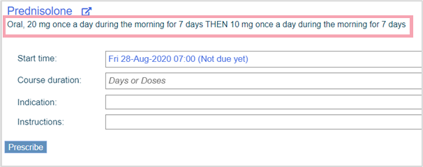 Depending on your organisation, prescribing without a dose sentence might be prohibited for some medications, such as high-risk medications.
