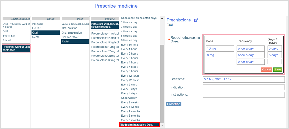 If your organisation allows it, you can prescribe a reducing or increasing course of medication by prescribing without a dose sentence.