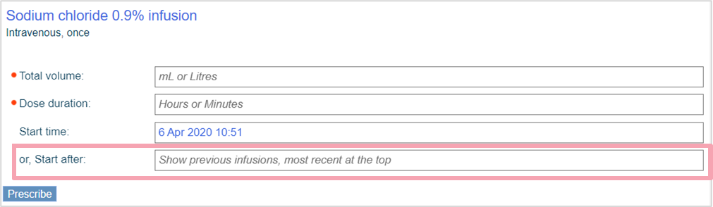 To prescribe fluids sequentially, for each fluid except the first in the sequence, select the previous fluid from OR, START AFTER.