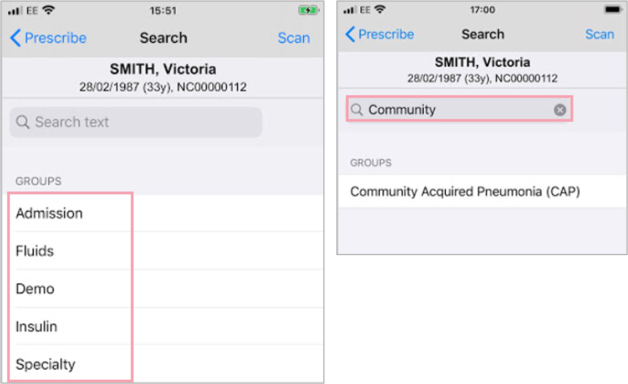 Add the medication or fluid by typing, scanning, adding from groups or adding from previous prescriptions.