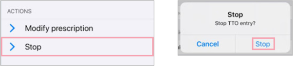 You can delete a specific medication from the list of TTO prescriptions on a mobile or desktop. On a mobile, this is called stopping a TTO.