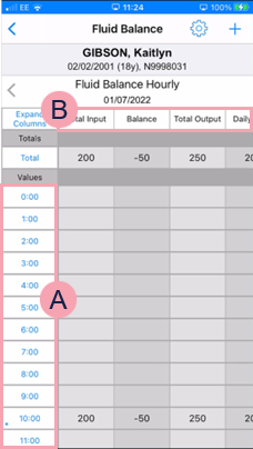 You can enter fluid balance readings, start a chart, edit input and output columns, strike out entries, and stop the chart from a mobile. You can view charts in full or collapsed into summaries.