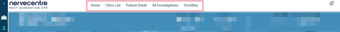 Navigate between the clinical areas of Patient Detail. Select to see more areas. The areas available to you depend on your organisation. |