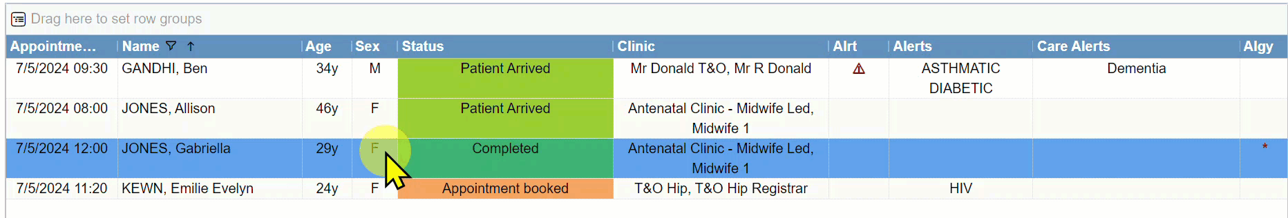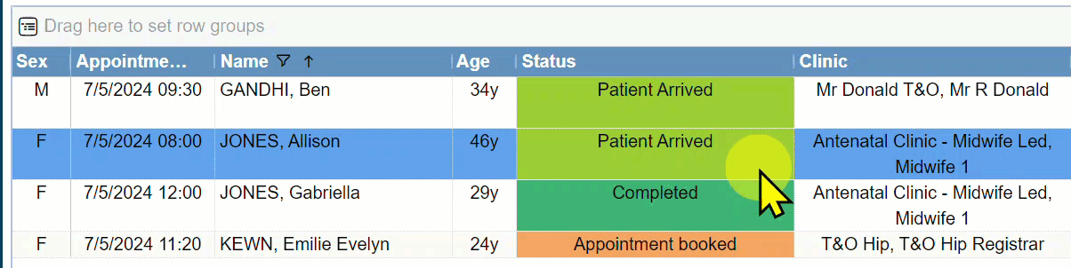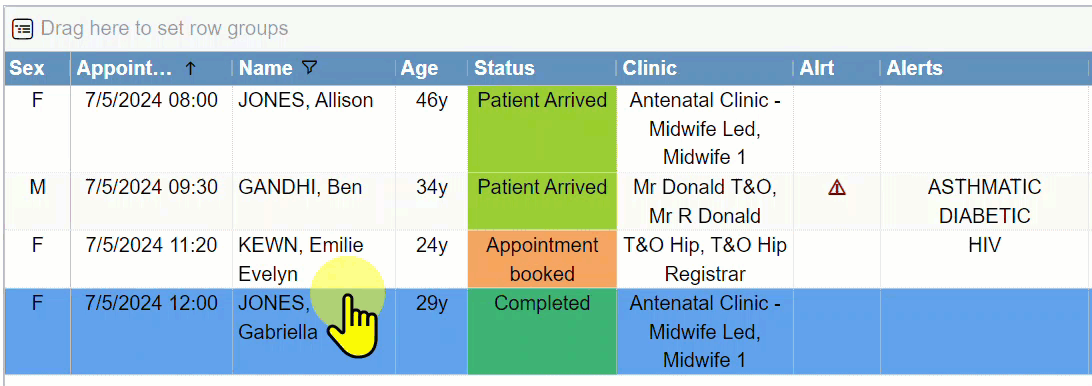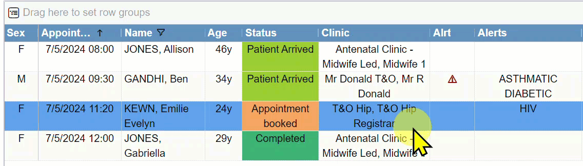 Columns are automatically reset when you log out of Nervecentre. You can also reset the columns when you want to.