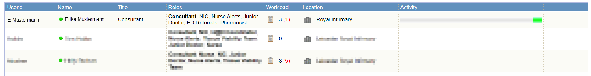 The number of tasks assigned to the user is shown in black. The number of high priority tasks assigned to the user is shown in red. Select to view all tasks for that user. |