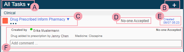 You can view task information in the task summary. You can view the task summary from Inpatients > Patient List > double-click on a patient's name > Patient Detail > Clinical.